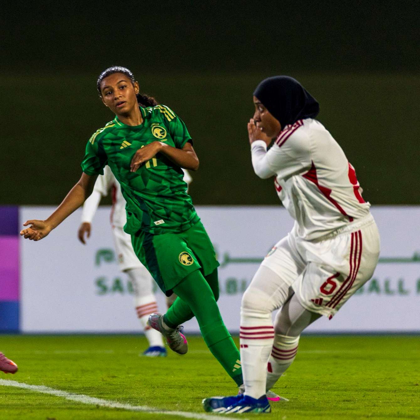 وفي الشوط الثاني، استمر المنتخب الإماراتي في التراجع إلى الخلف لعدم قدرته على اختراق وسط السعودية، حيث لم تنجح محاولات المدربة الهولندية فيرا باو في إعادة لاعباتها لأجواء المباراة بعد النتيجة الثقيلة بالشوط الأول.