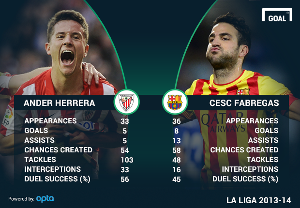Barely a fortnight after Chelsea tried to upstage the World Cup curtain-raiser by announcing the signing of Cesc Fabregas, title rivals Manchester United have now recruited their own talented, big-money, Spanish midfielder. There is far less fanfare accompanying Ander Herrera, though, and many are already wondering why United opted to sign the Athletic Bilbao man ahead of his more experienced counterpart.