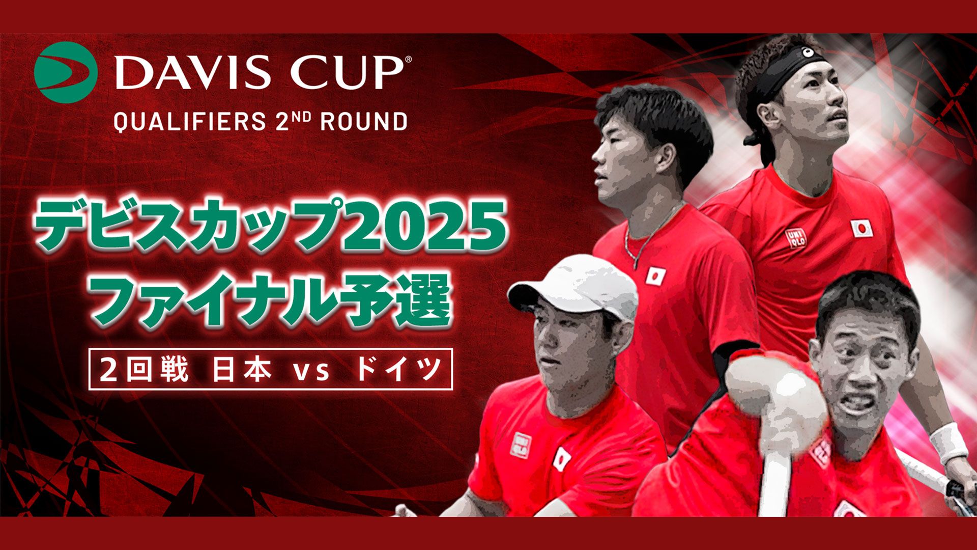 テニスの『2025 デビスカップ』は、2025年1月31日(金)にファイナル予選1回戦『日本vsイギリス』が開催。錦織圭が、世界ランク77位のジェイコブ・ファーンリーと対戦する。