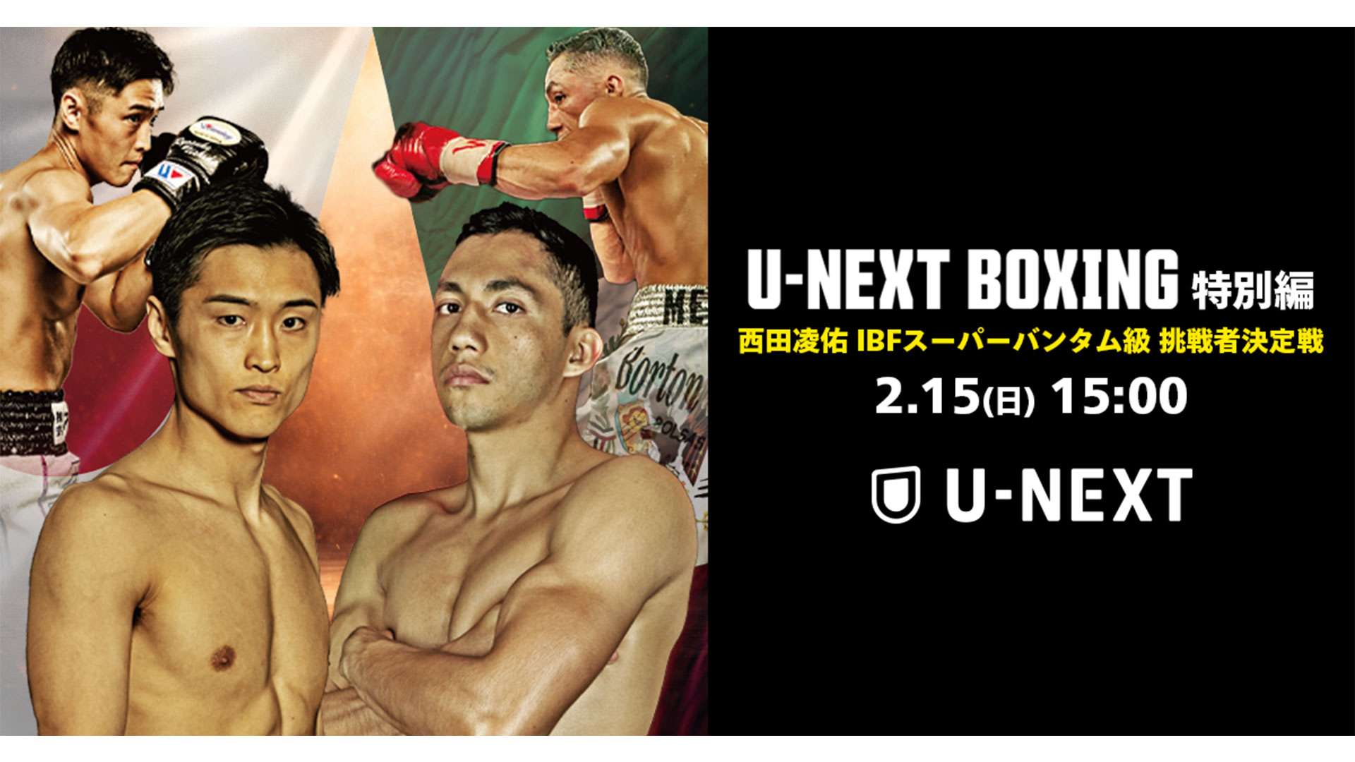 - U-NEXT BOXING 特別編 西田凌佑 IBFスーパーバンタム級 挑戦者決定戦を視聴するだけ