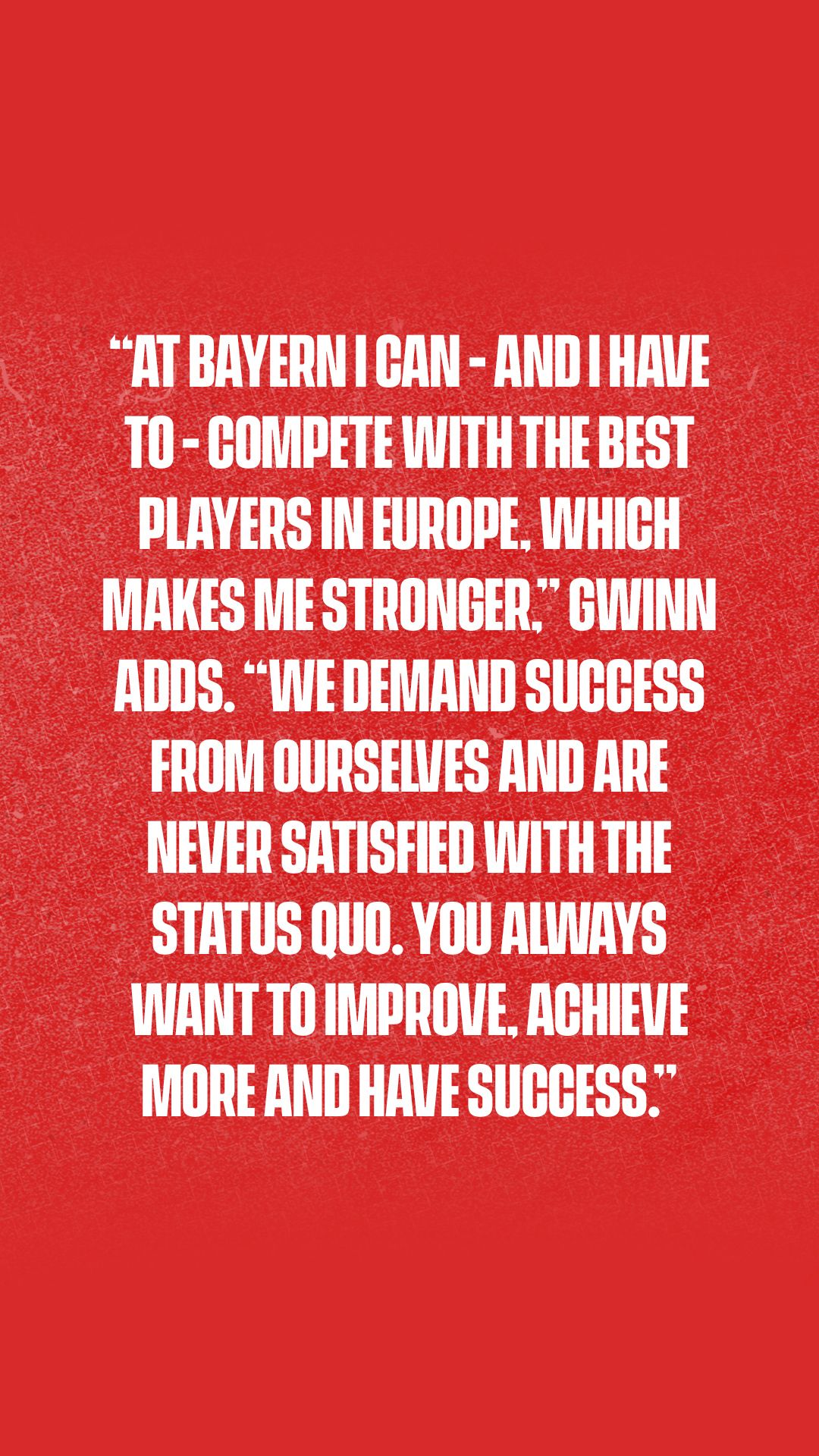 “At Bayern I can - and I have to - compete with the best players in Europe, which makes me stronger,” Gwinn adds. “We demand success from ourselves and are never satisfied with the status quo. You always want to improve, achieve more and have success.”