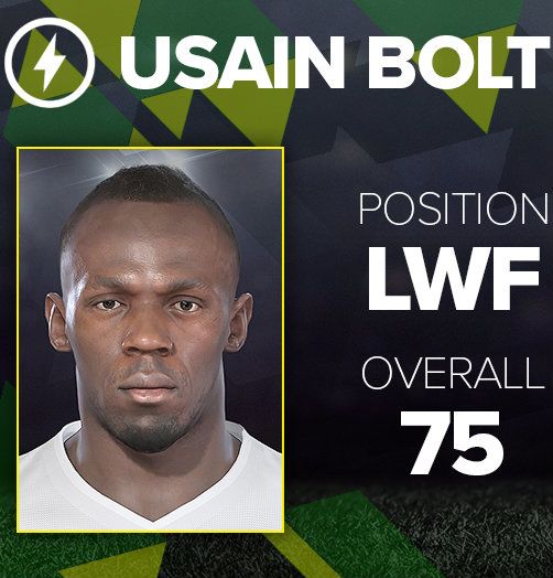 En caso de fracasar en el intento, el Pro Evolution Soccer ya cumplió su sueño... de manera virtual. En la edición 2018, convirtieron a Usain en jugador de futbol, en un extremo izquierdo con ratings que los gamers consideran exagerados: 75 puntos general, solo tres menos que Kylian Mbappe, 99 en velocidad y fuerza explosiva, por encima de Aubameyang, Bale, Sané, Bellerín y Walcott. Solo igualado con la cifra que en el PES 5 fue asignada a Obafemi Martins.