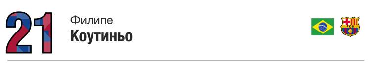 Бразилец в первой части прошлого сезона зажигал в «Ливерпуле» (12 голов в 20 матчах), а затем ушел в «Барселону». Предположительно, сумма трансфера может достичь 160 млн евро, и Филиппе начал отрабатывать их сразу. Он внес свой вклад в чемпионство и победу в Кубке Испании в виде 10 голов, а летом был одним из лидеров Бразилии на чемпионате мира.
