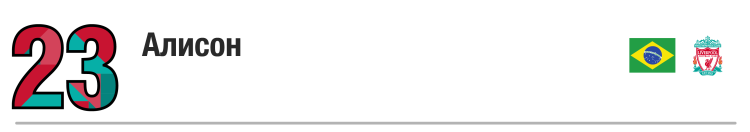 Весь свой первый сезон в «Роме» Алисон был дублером Войцеха Щенсного, но во втором заслужил статус одного из лучших вратарей мира. Только Ян Облак и Марк-Андре тер Штеген провели больше сухих матчей, чем он (22). Алисон стал одним из ключевых факторов успеха «Ромы» в Лиге чемпионов, где римляне дошли до полуфинала. Летом он ушел в «Ливерпуль» за 67 млн фунтов, став на тот момент самым дорогим вратарём в истории футбола.