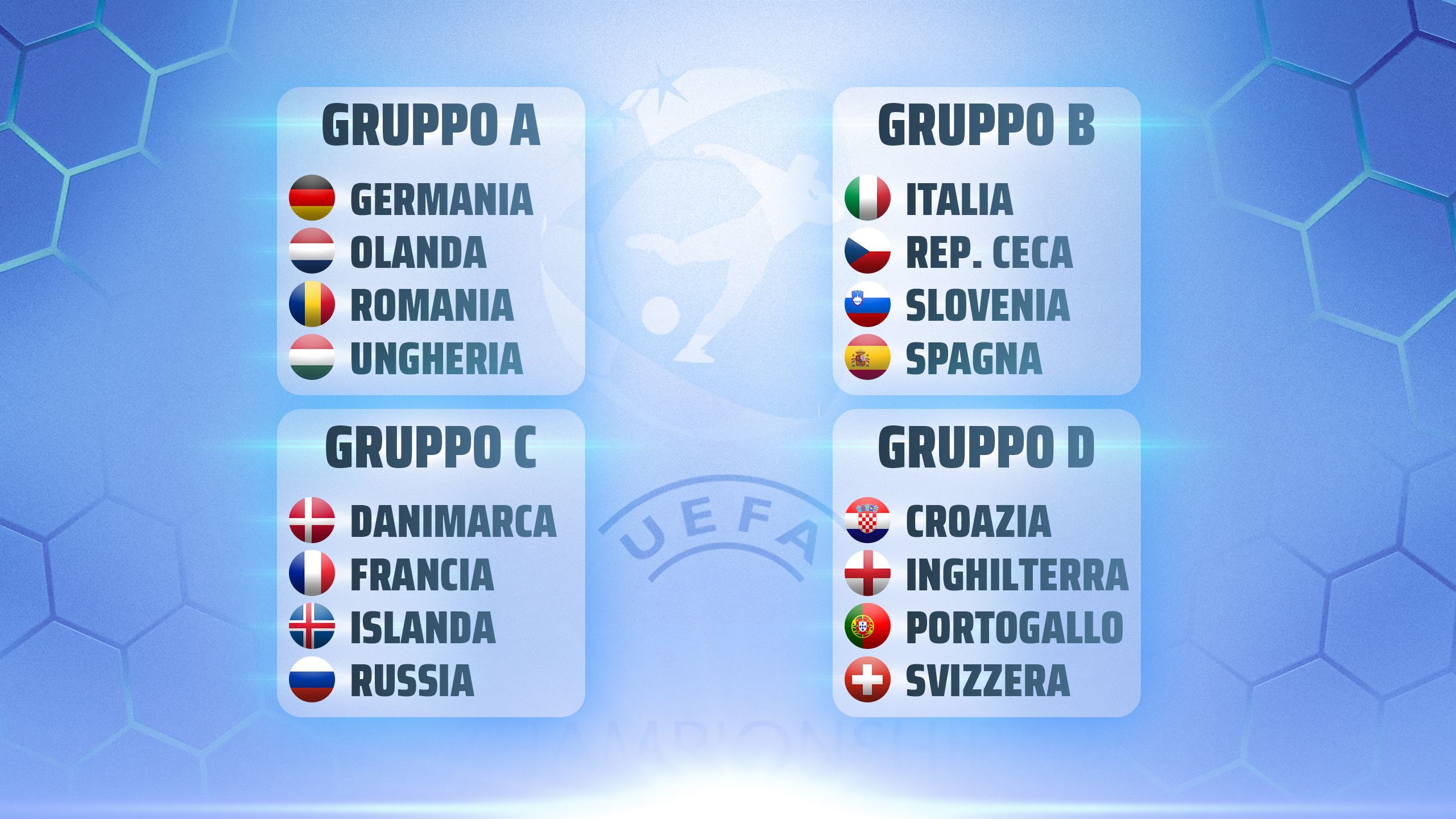 Un doppio appuntamento che inevitabilmente aggiungerà ulteriori variabili alla manifestazione, che vedrà la Spagna campione in carica chiamata a difendere il titolo dagli assalti di nazionali come Francia, Portogallo, Inghilterra e Olanda, che si presentano ai nastri di partenza con dei roster che traboccano talento.