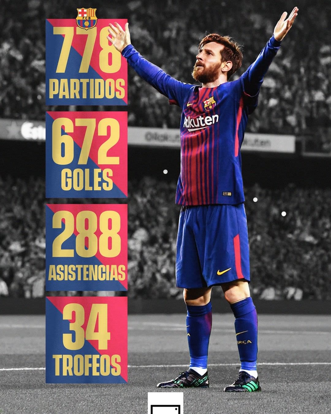 Las cifras goleadoras que supo cosechar en Barcelona nunca dejarán de sorprender al ser mencionadas. Alcanzó los 672 goles en 778 encuentros. Evidentemente es el máximo anotador de la historia culé, pero lo admirable es que le sacó 442 goles de diferencia a César Rodríguez, su más inmediato perseguidor. Leo también es el máximo goleador histórico liguero con 474. ¿El segundo? Cristiano Ronaldo con 311.